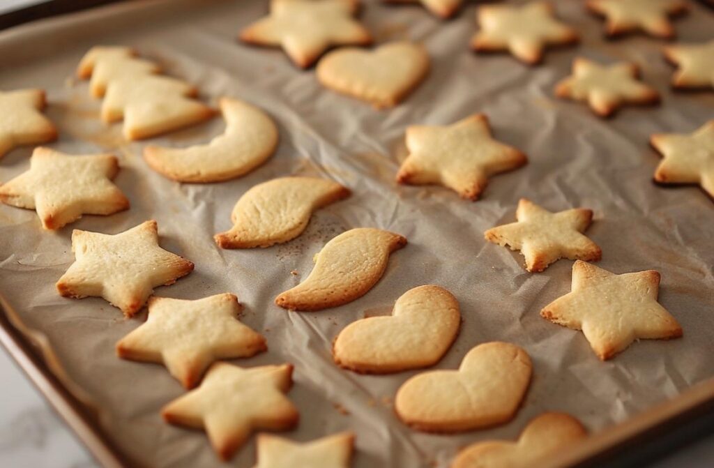 Découper des formes de 5 mm d’épaisseur et les placer sur du papier sulfurisé